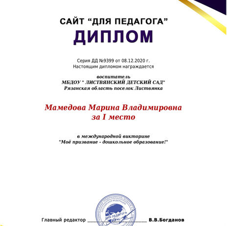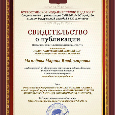 Личная электронная почта: mari-mamedova-70@mail.ru